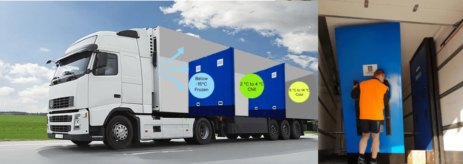 Serves our customers in the transportation industry, especially in cold chain logistics. Our products include 2-piece and 3-piece portable chiller boards for creating multi-temperature zones within freezer trucks, thermal pallet covers, PVC strip curtains, truck and trailer tarps, load restraints and grab handles
